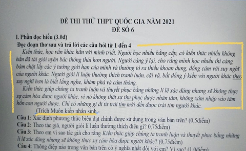 Đoạn văn nằm trong đề thi thử THPT Quốc gia 2021 là một trong những lời khuyên được tác giả đưa ra trong "Muôn kiếp nhân sinh 2" giúp con người chuyển đổi...