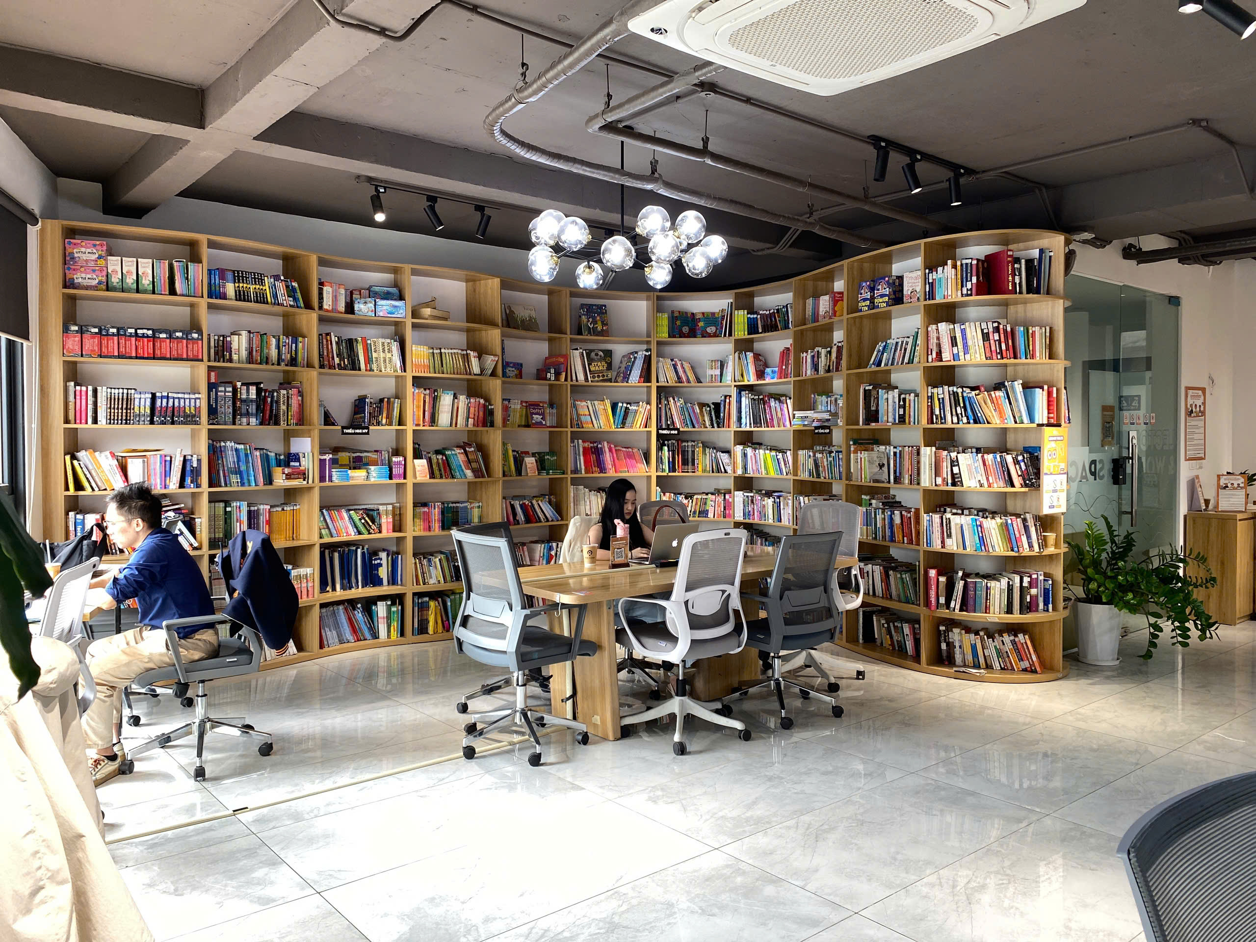 Thư viện Read Station được thiết kế như một “căn phòng tri thức” – nơi mọi yếu tố đều hướng tới việc khơi gợi cảm hứng học tập. Mọi nơi trong không gian đều được bố trí tối giản, ánh sáng dịu, bàn ghế thoải mái và đảm bảo yên tĩnh tuyệt đối.